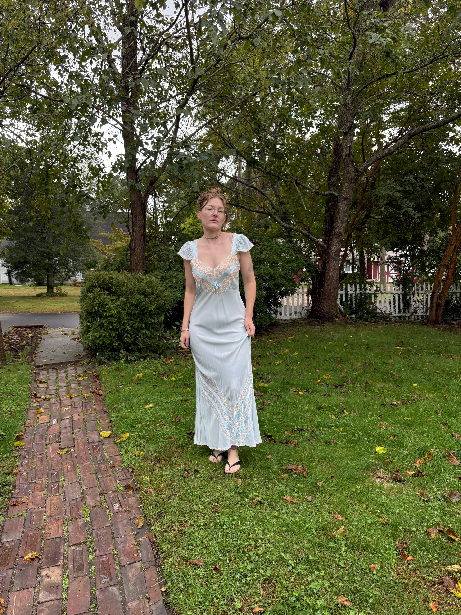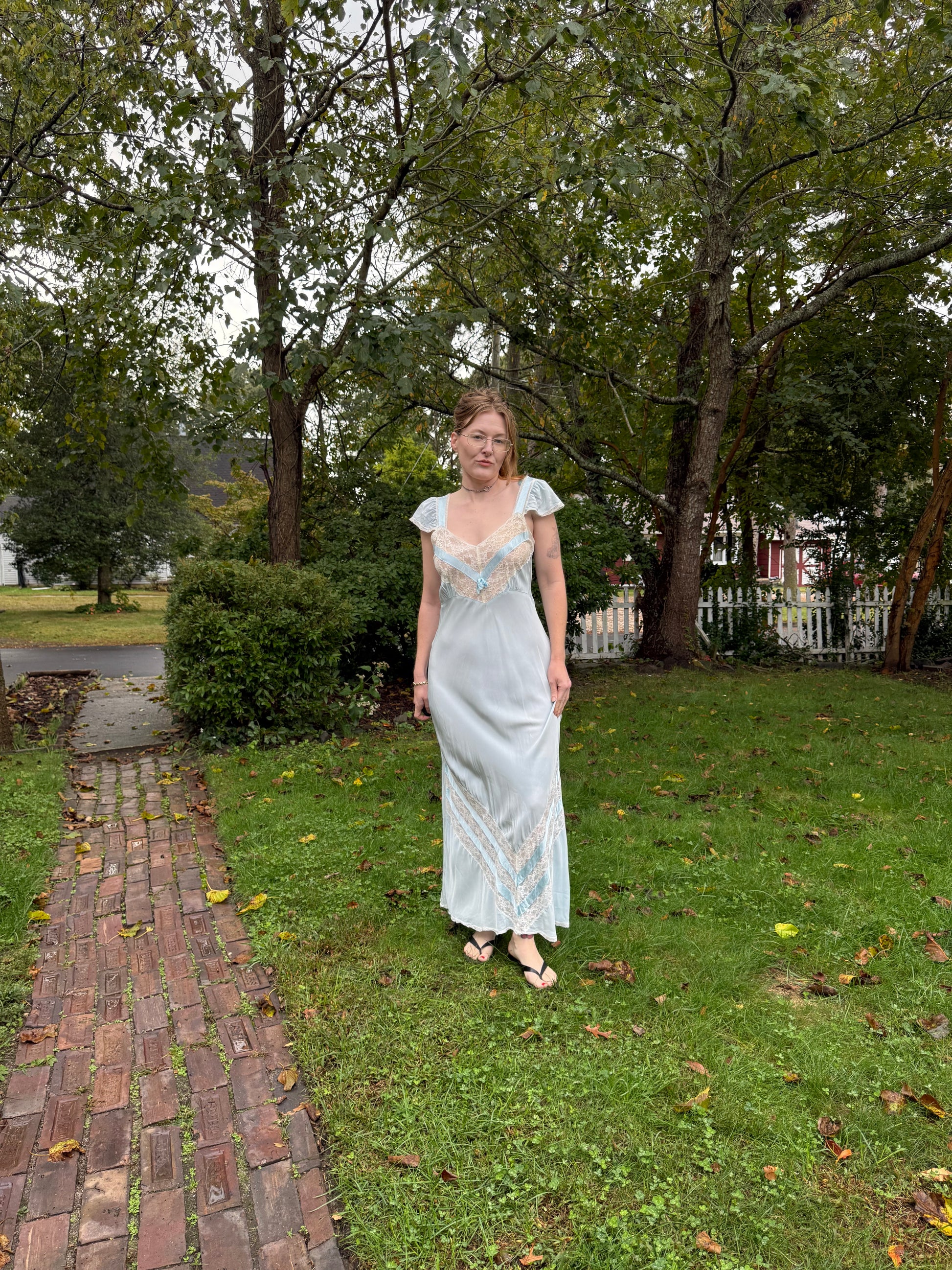 1940s Light Blue Rayon Slip Dress M/L