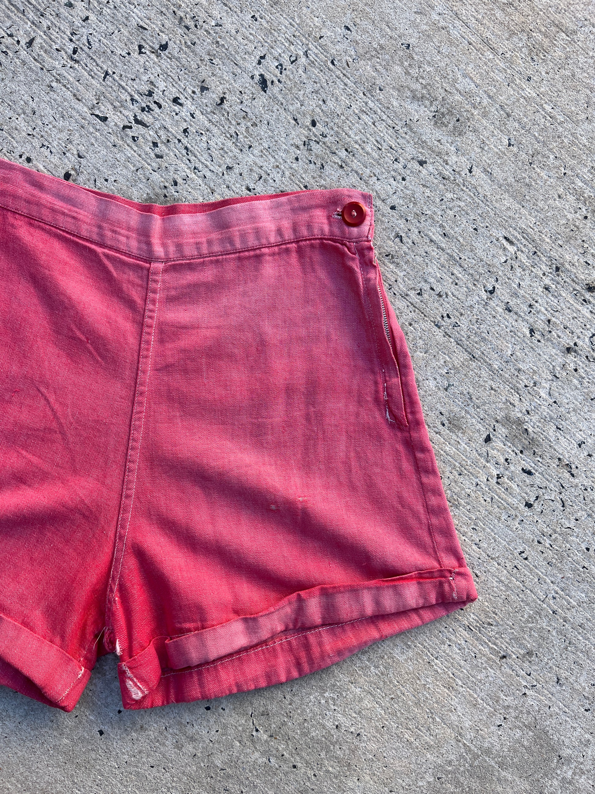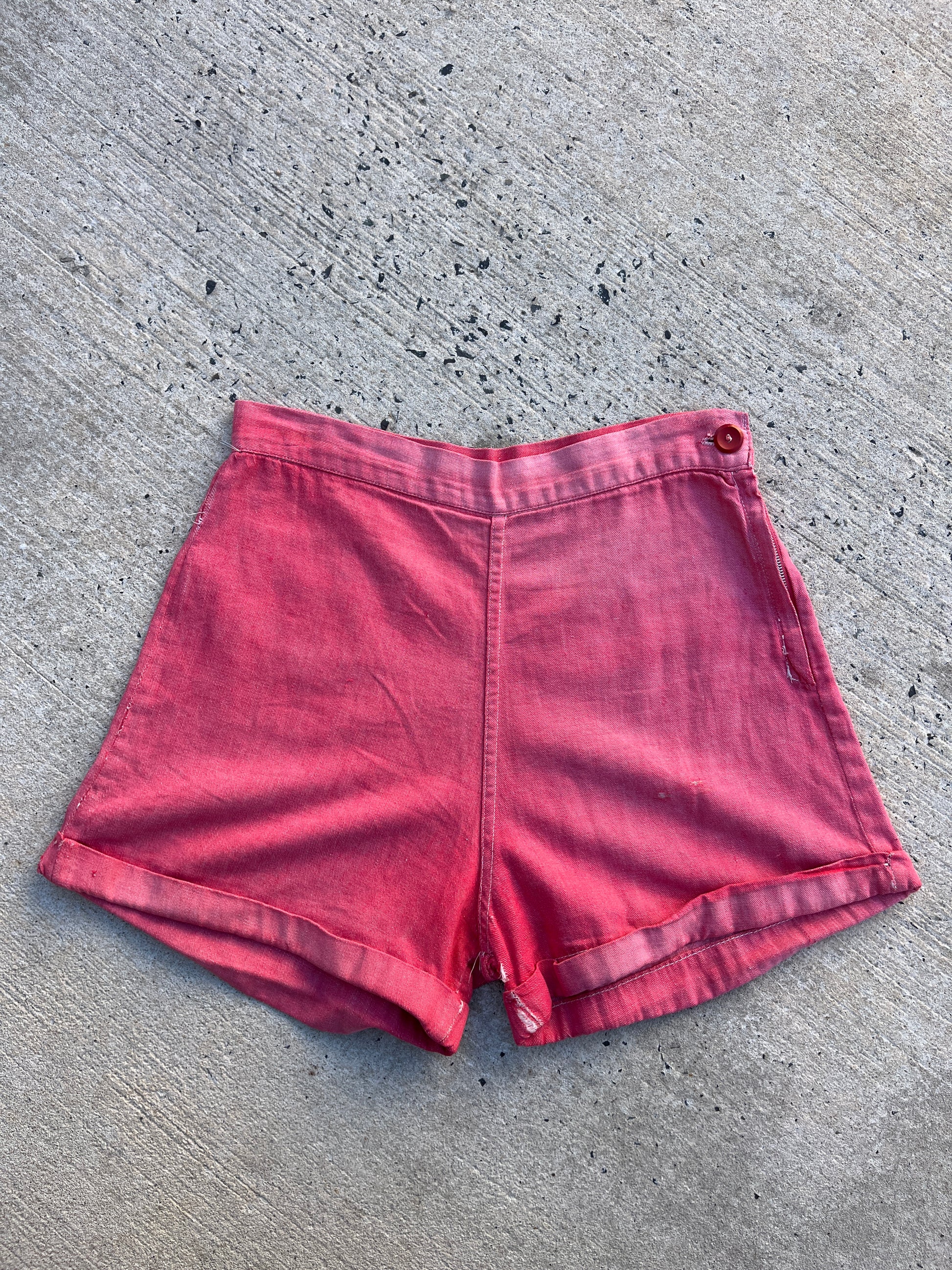 Sexxxy. These could use one repair on the booty to give longevity to the garment but not necessary. Fit a 26” waist, 13” rise, 40” hip, 12” across thigh and 2” inseam. Such a cute pair!
