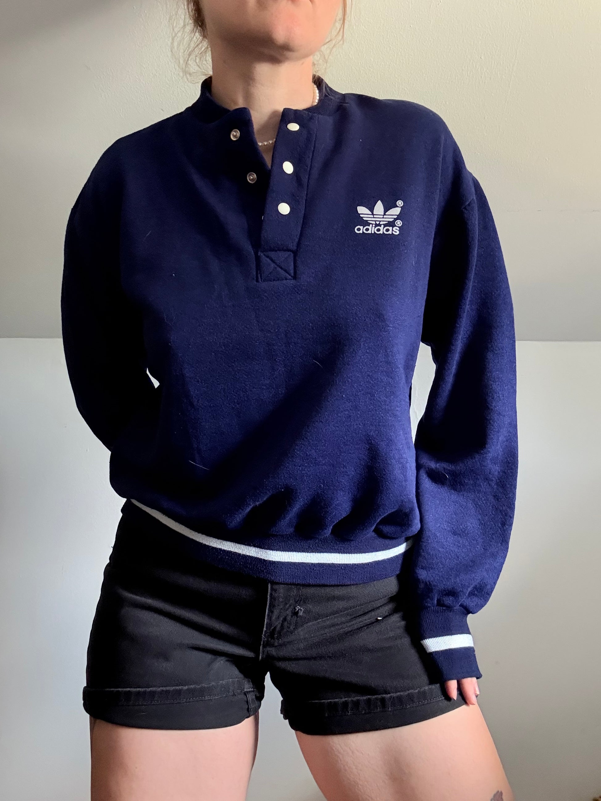 1980s ADIDAS Blue Quarter Button Sweat Shirt