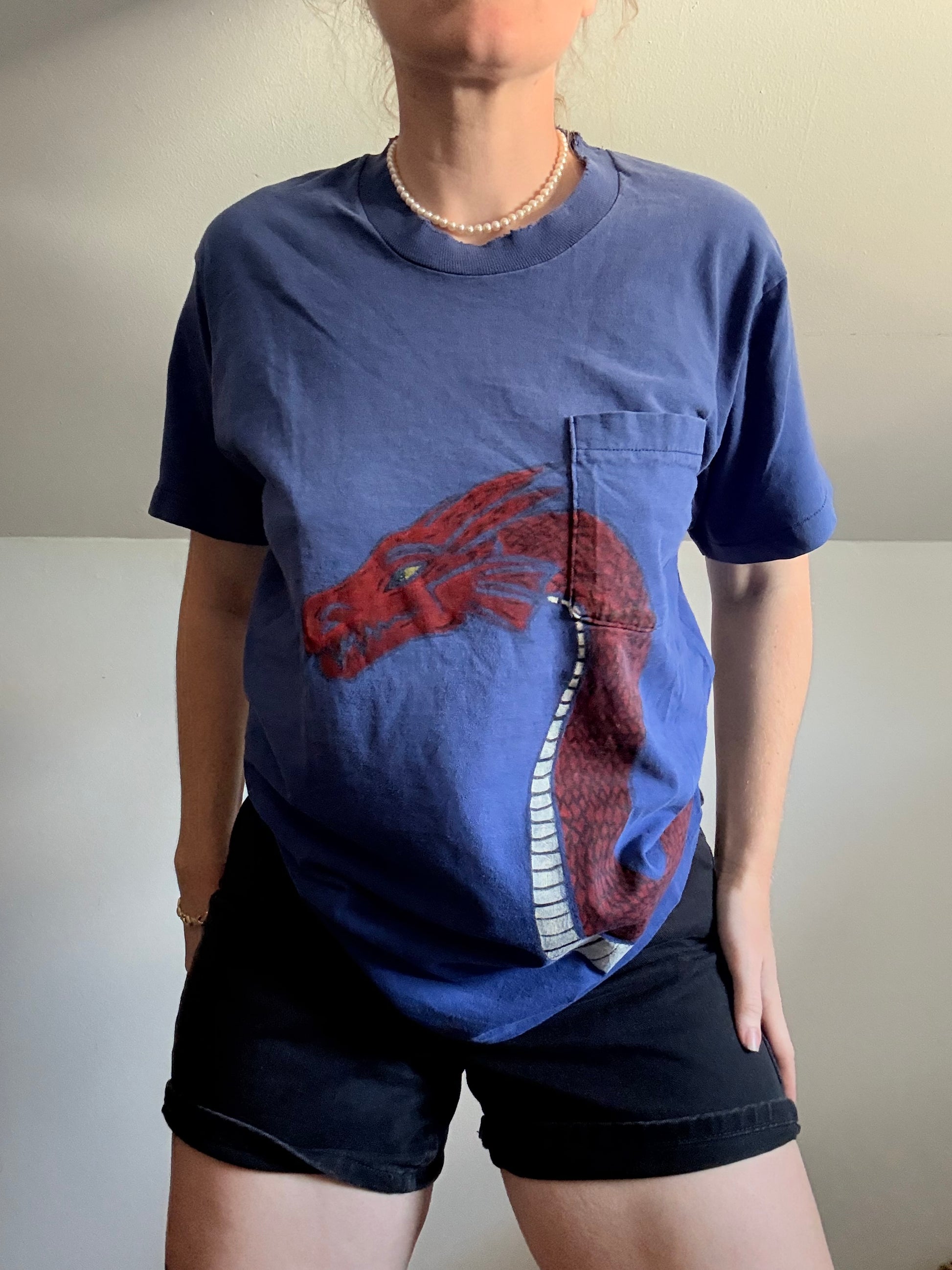 1980s Hand Painted Dragon Pocket Tee S-L