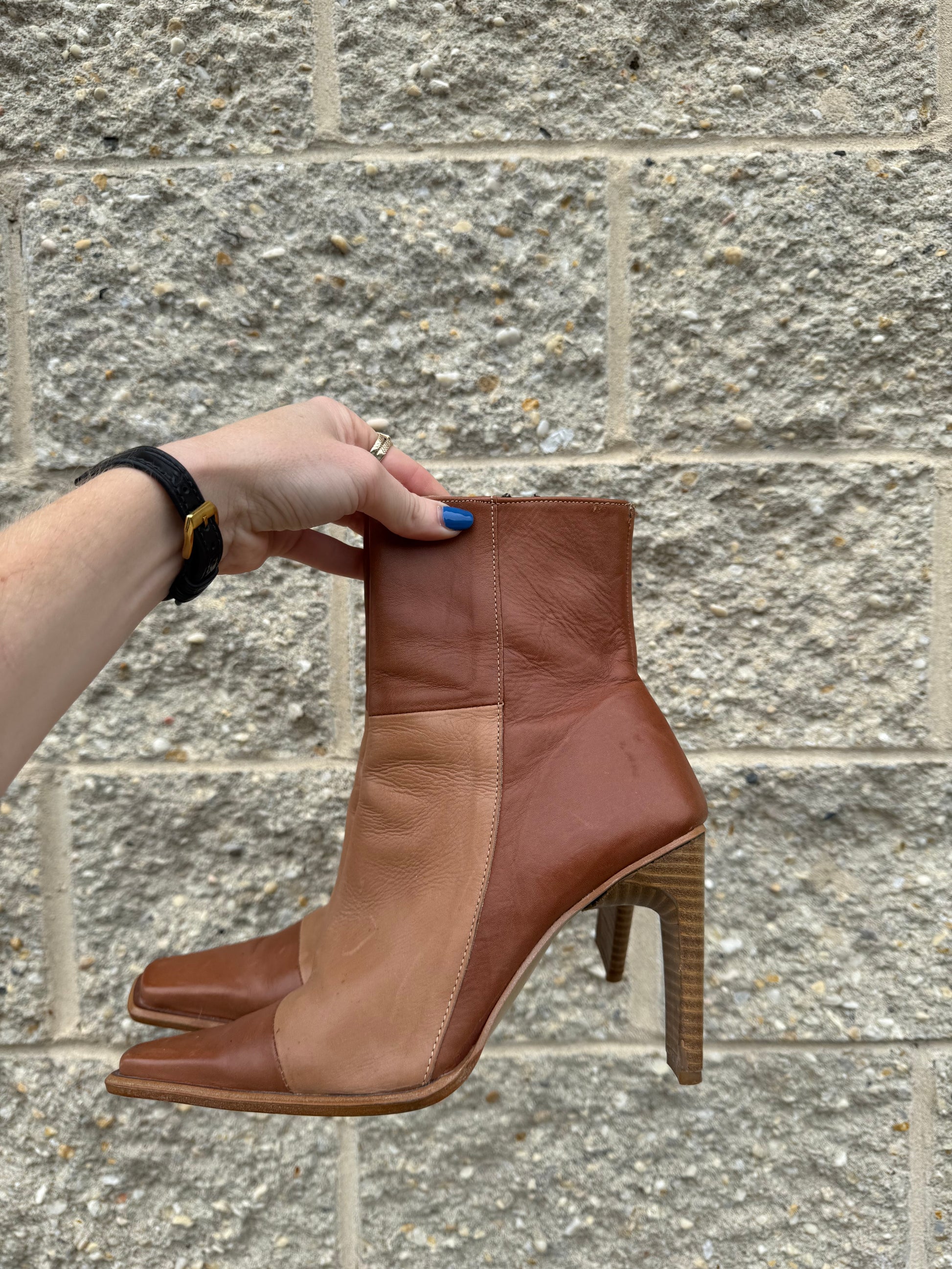 1980s Leather Color Block Boots Size 8