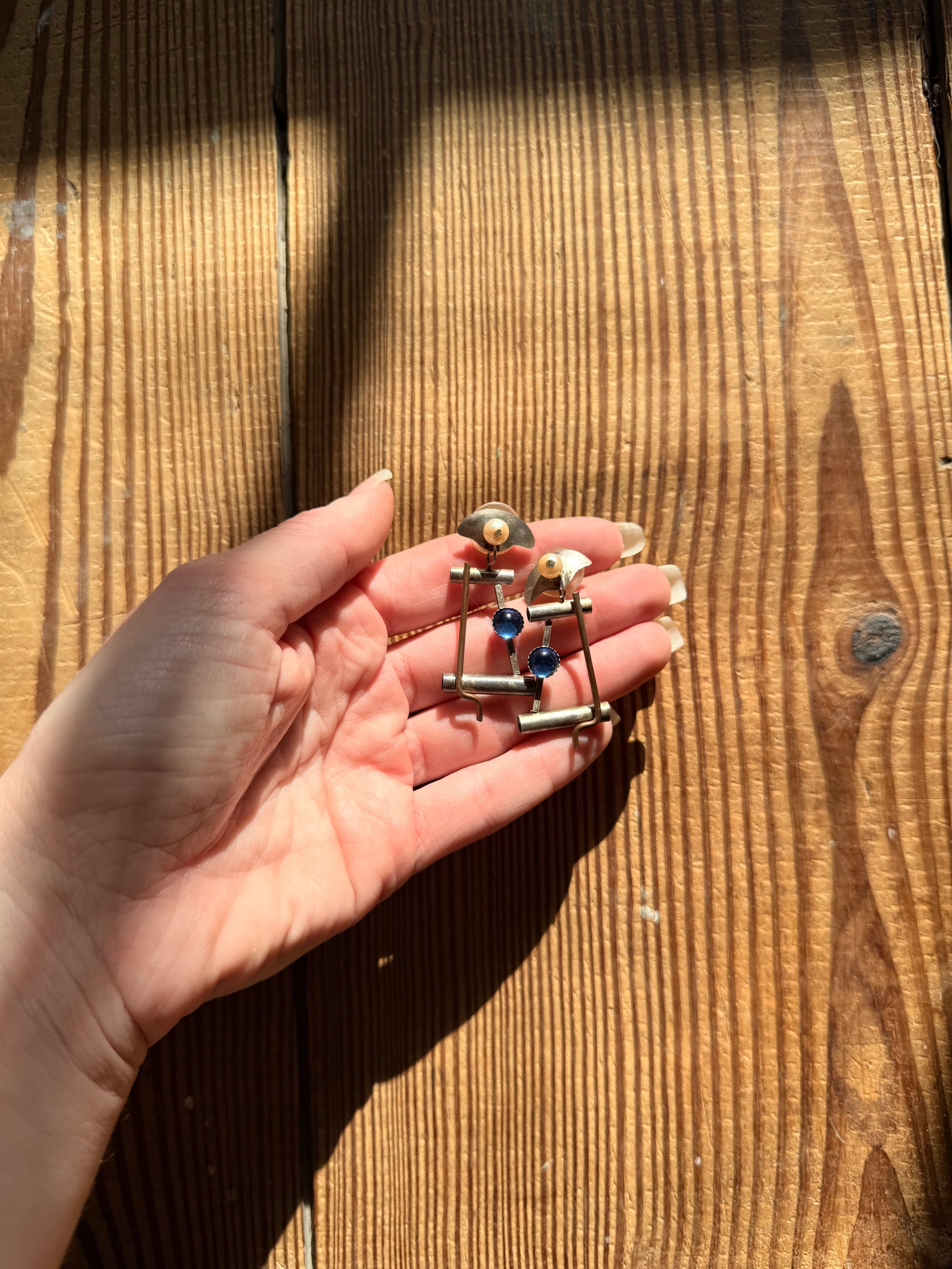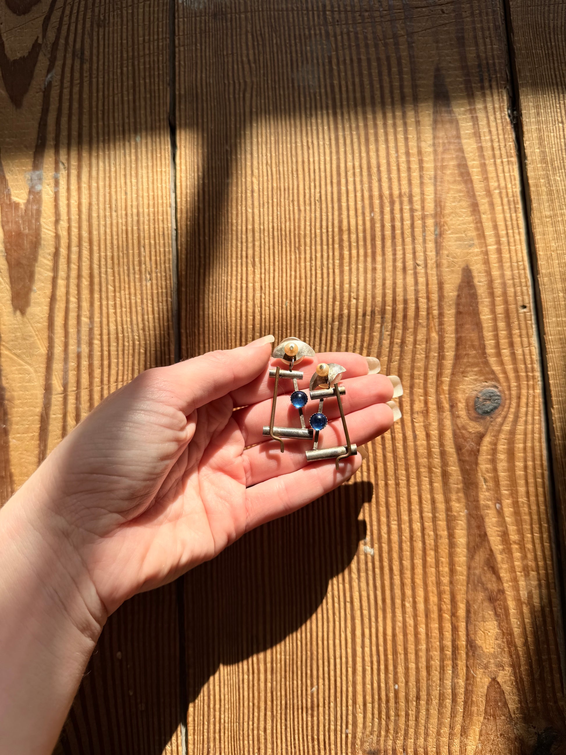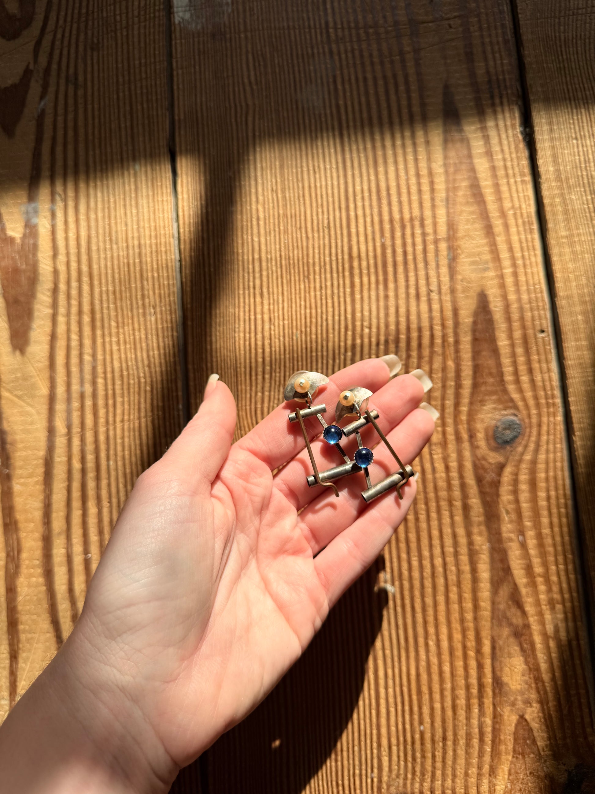 925 Silver Made by Hand Earrings with Pearl and Blue Stone