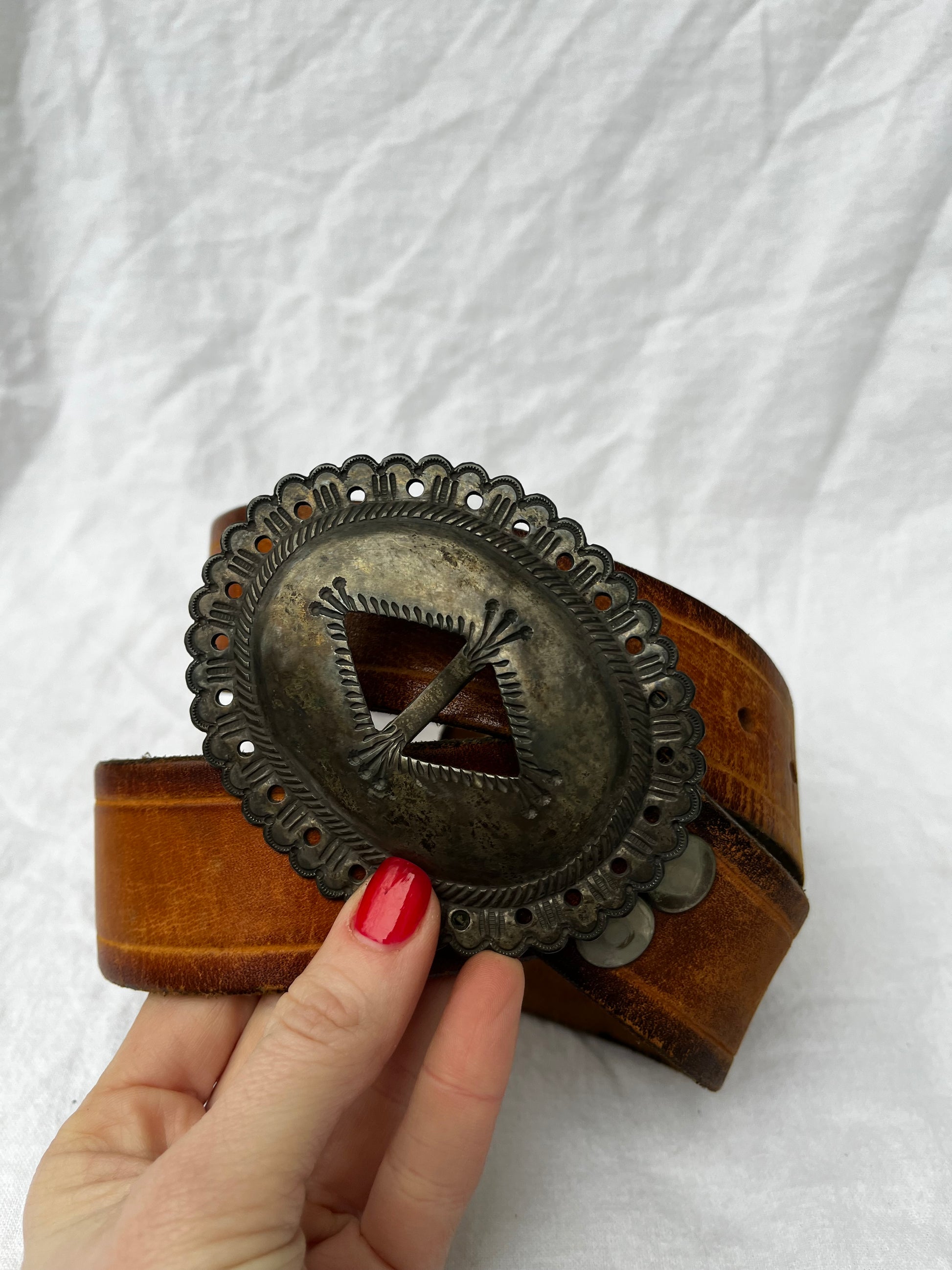 Brown Leather Belt with Double RRL Concho Buckle 29”-36”