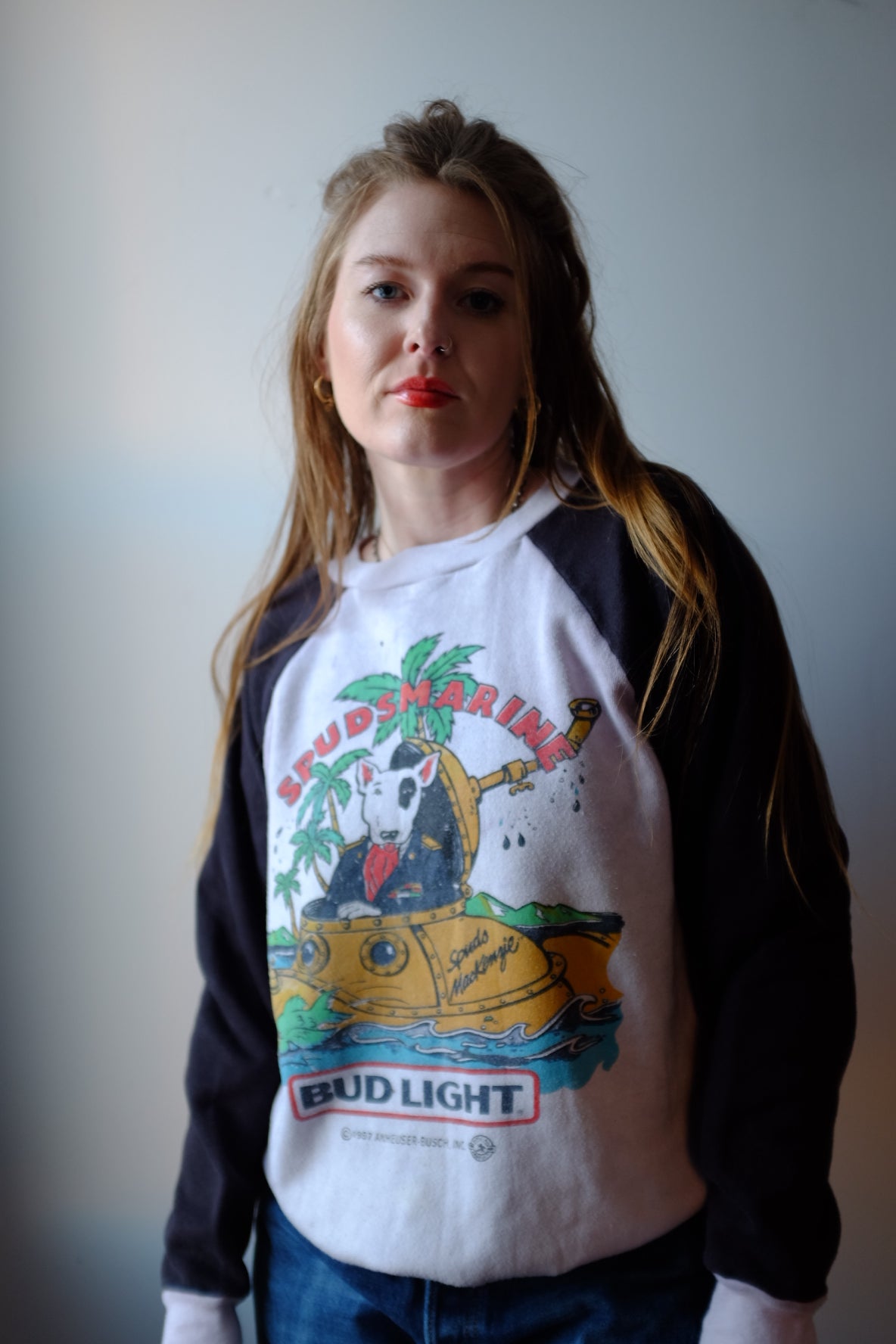 Lots of wear and tear but still such a cool one. Fits up to L.