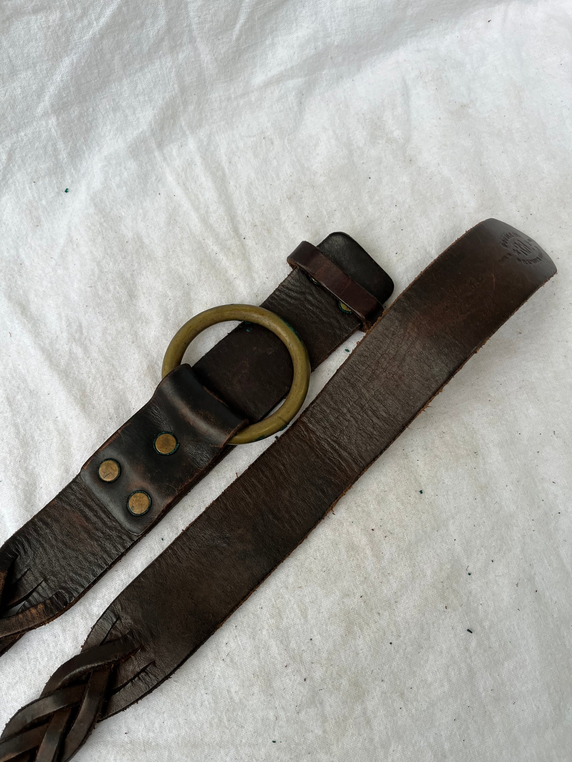 Double RL Ralph Lauren Brown Leather Braided Ring Belt 30”-40”