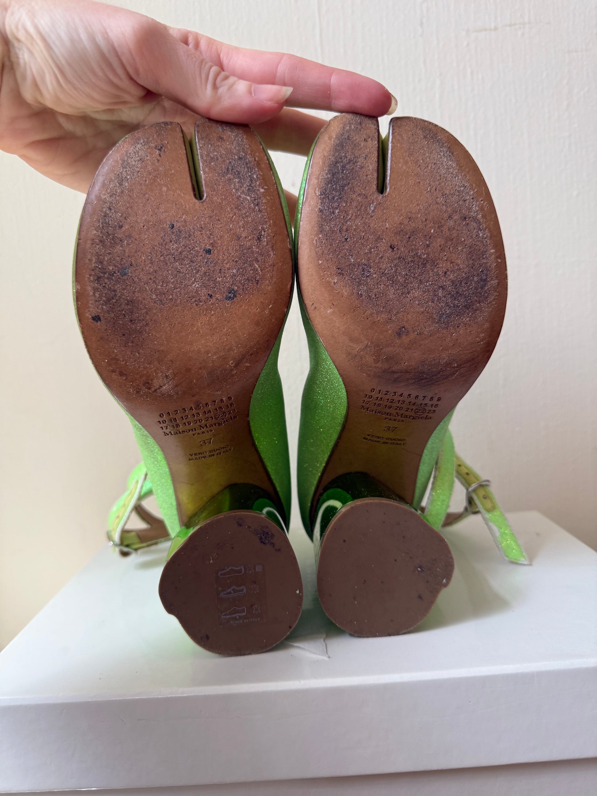 Maison Margiela Green Sparkly Dented Heel Lace Up Heels