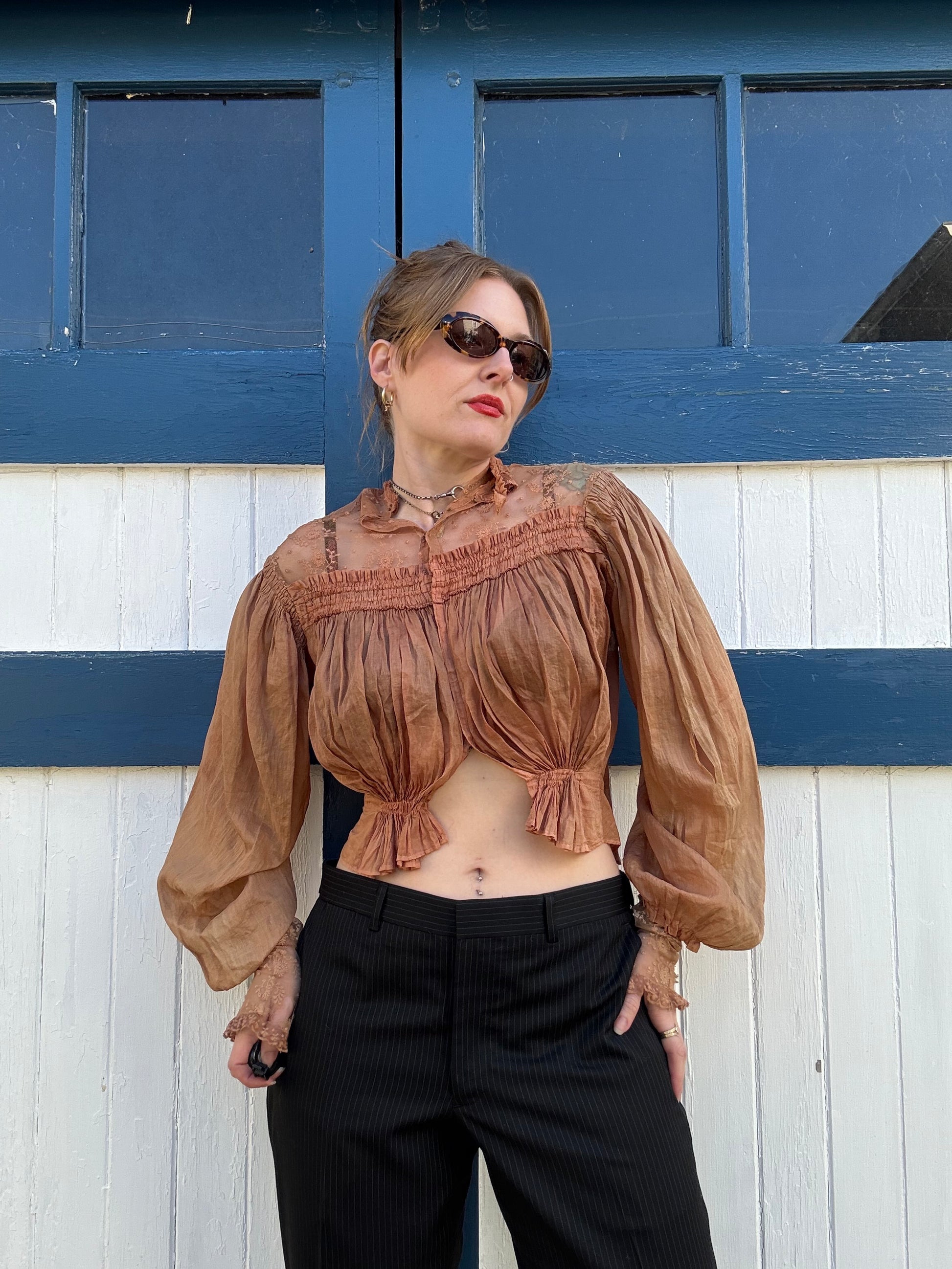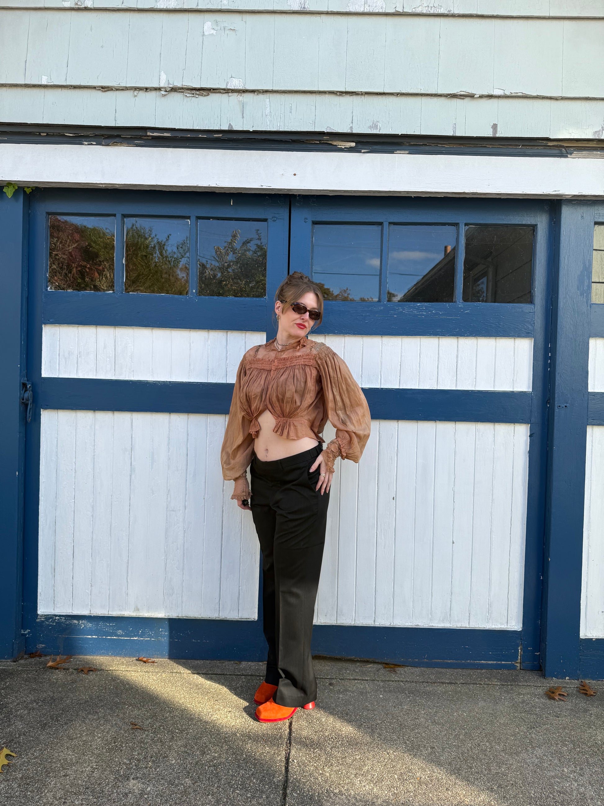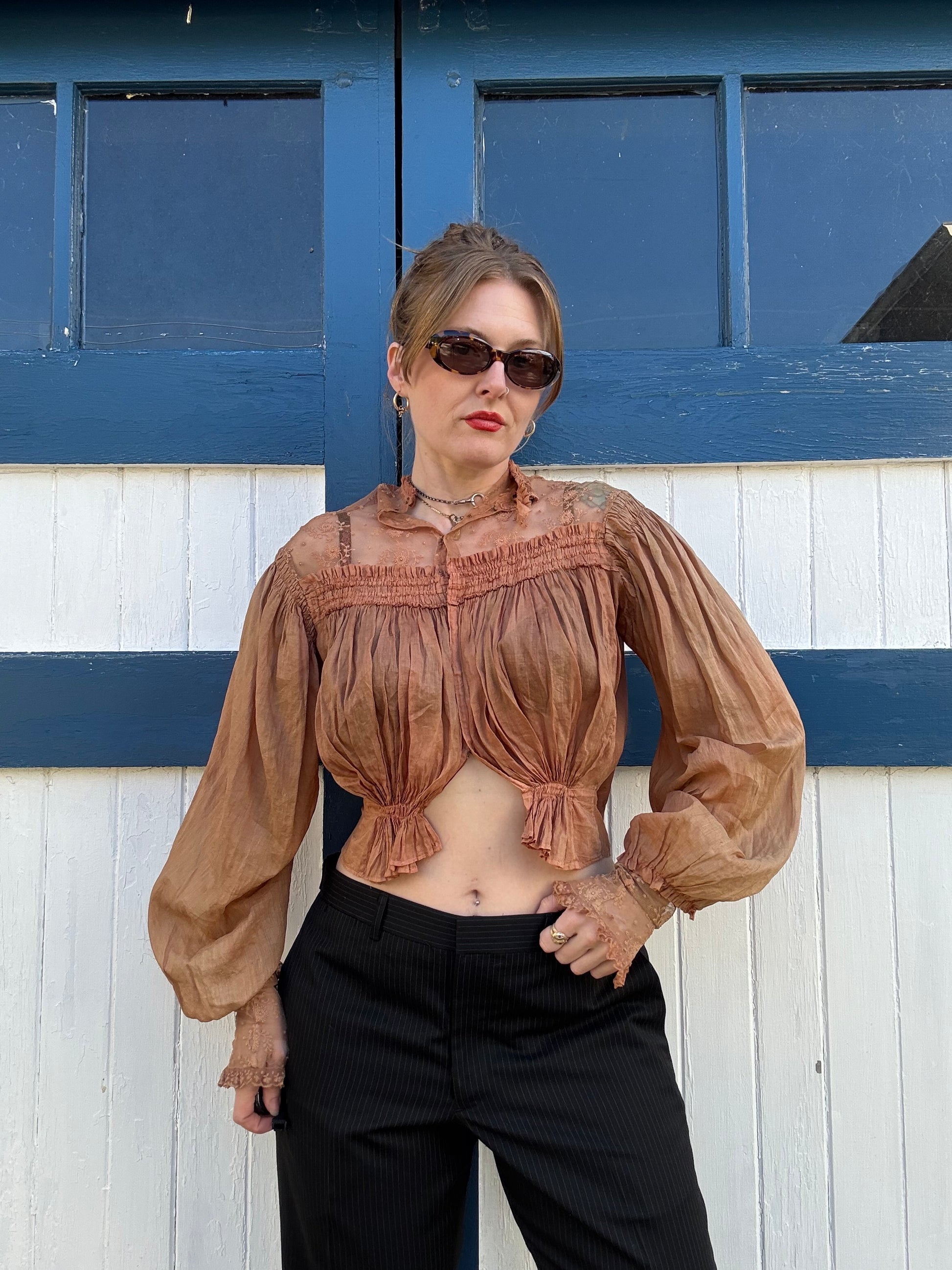 Wearable but has flaws! Works for XS/S - I am wearing it with the bottom buttons open. Flaws are on one arm as shown.