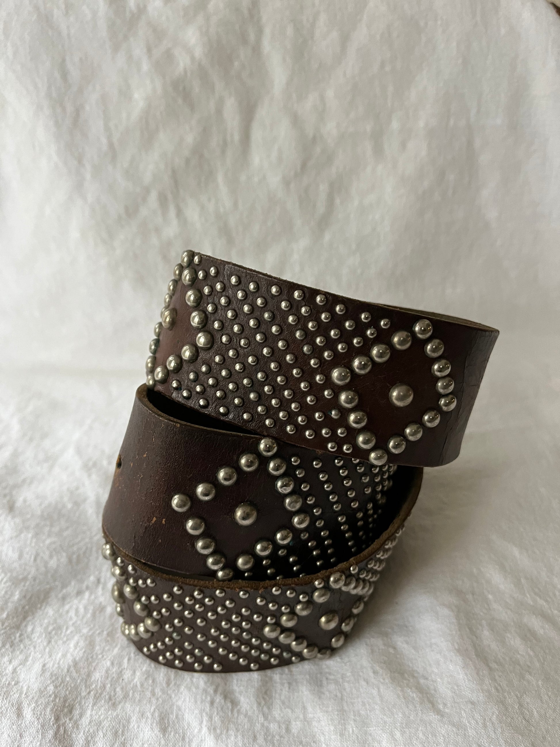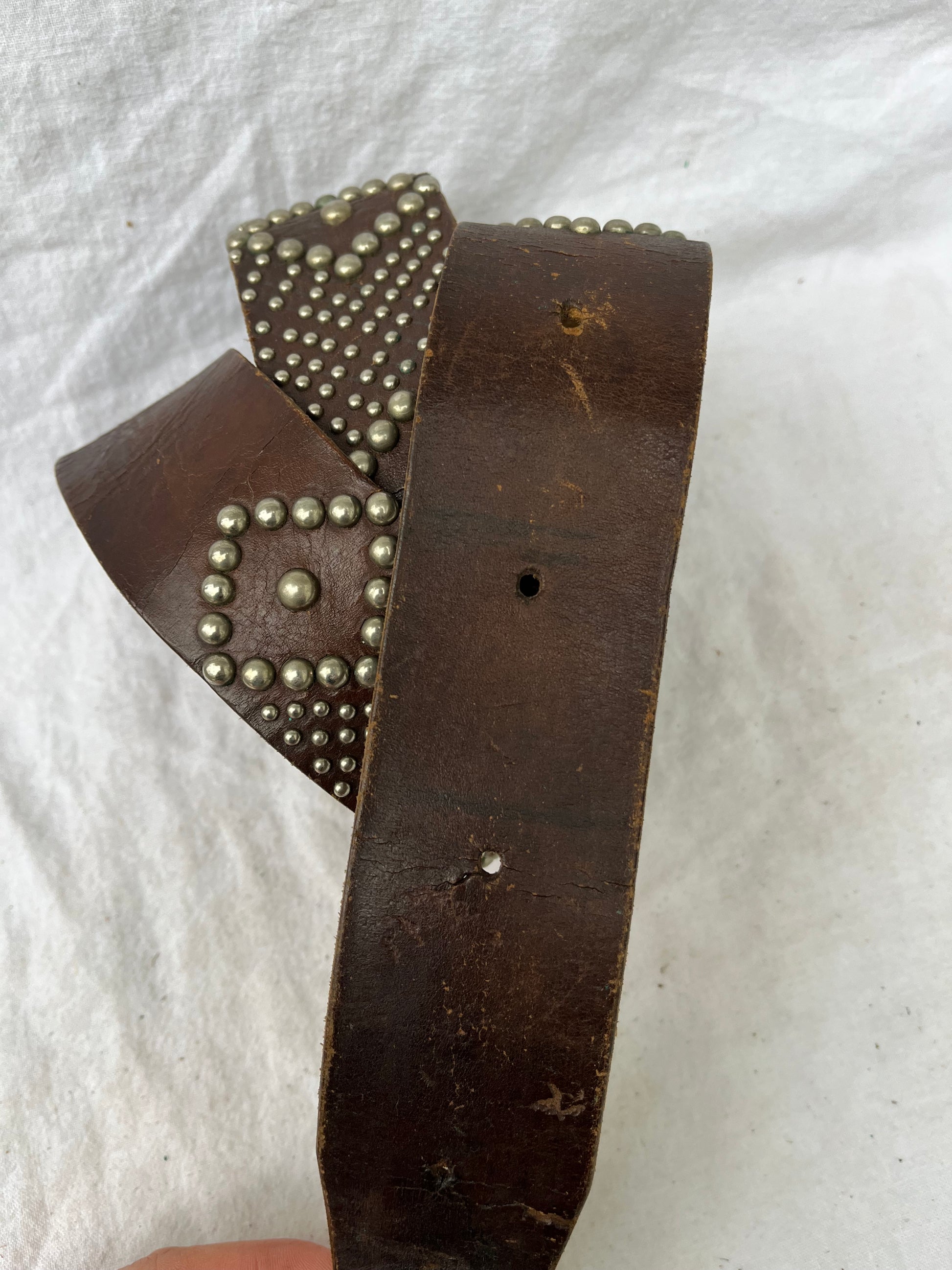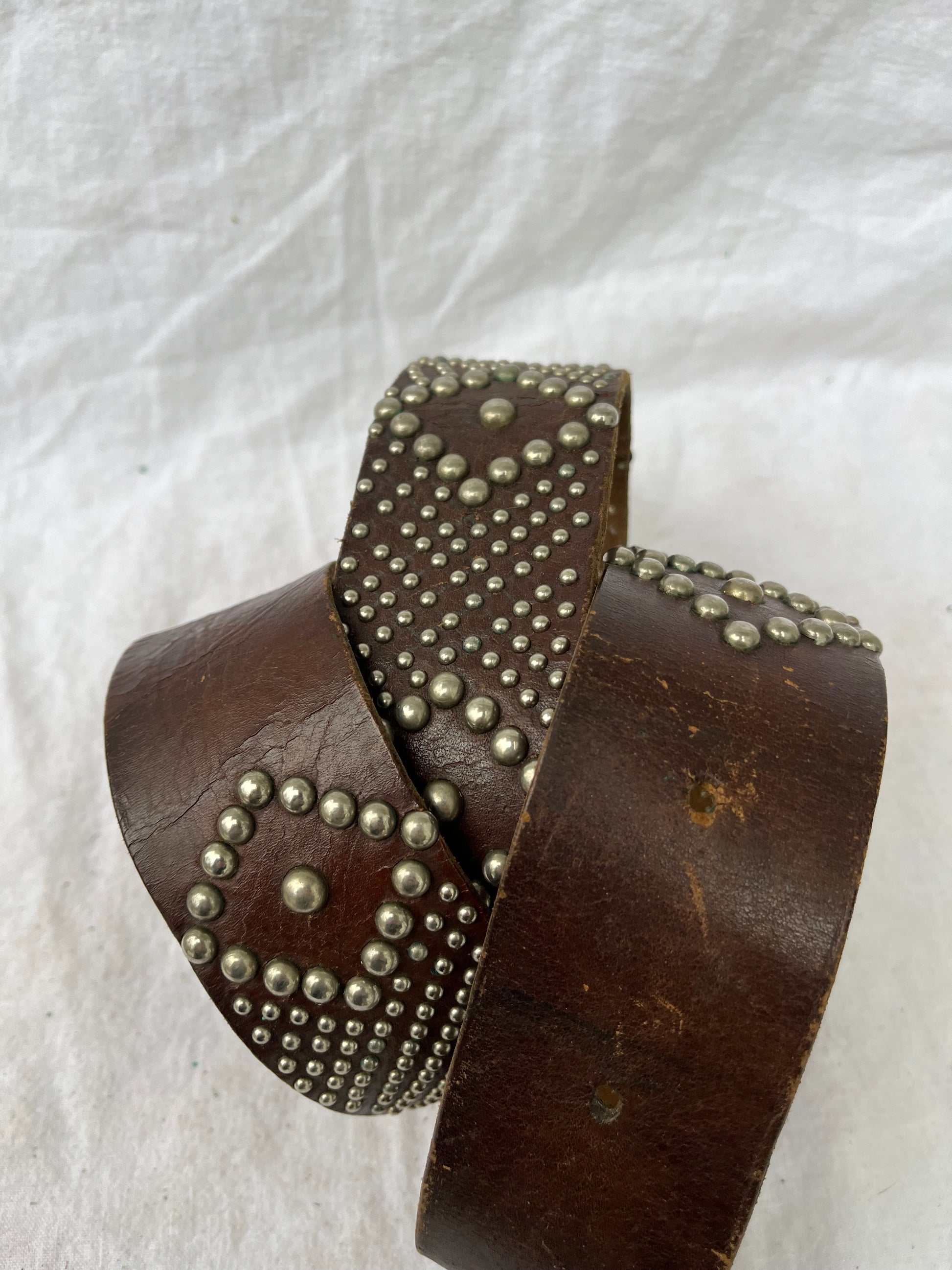 Intensely Studded Wide Brown Leather Belt 34”-40”